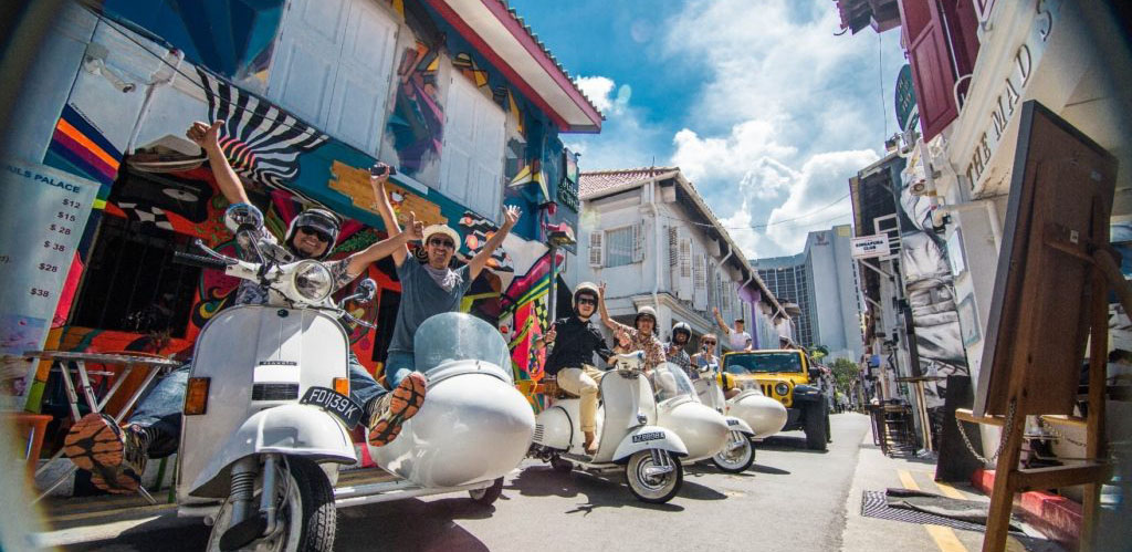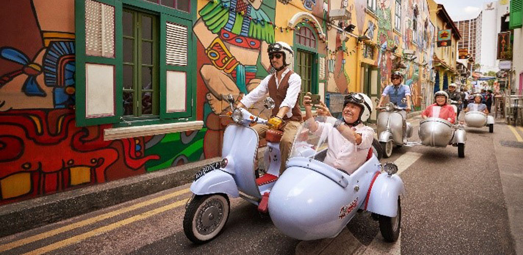 Take a spin by Sidecar. Malay Enclave. Urban renewal in a conservation district. Trendy cafes and “blogshops”. Singapore’s narrowest lane. Largest Mosque in Singapore. Fascinating artistic doodles on walls & public spaces.